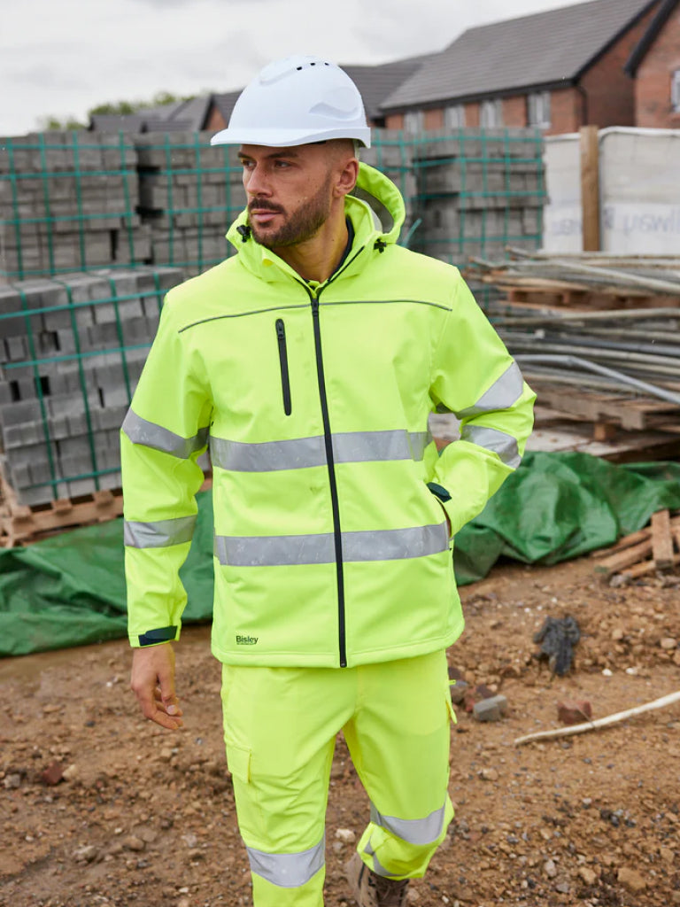 Bisley Taped Hi Vis Soft Shell Jacket with Hood
